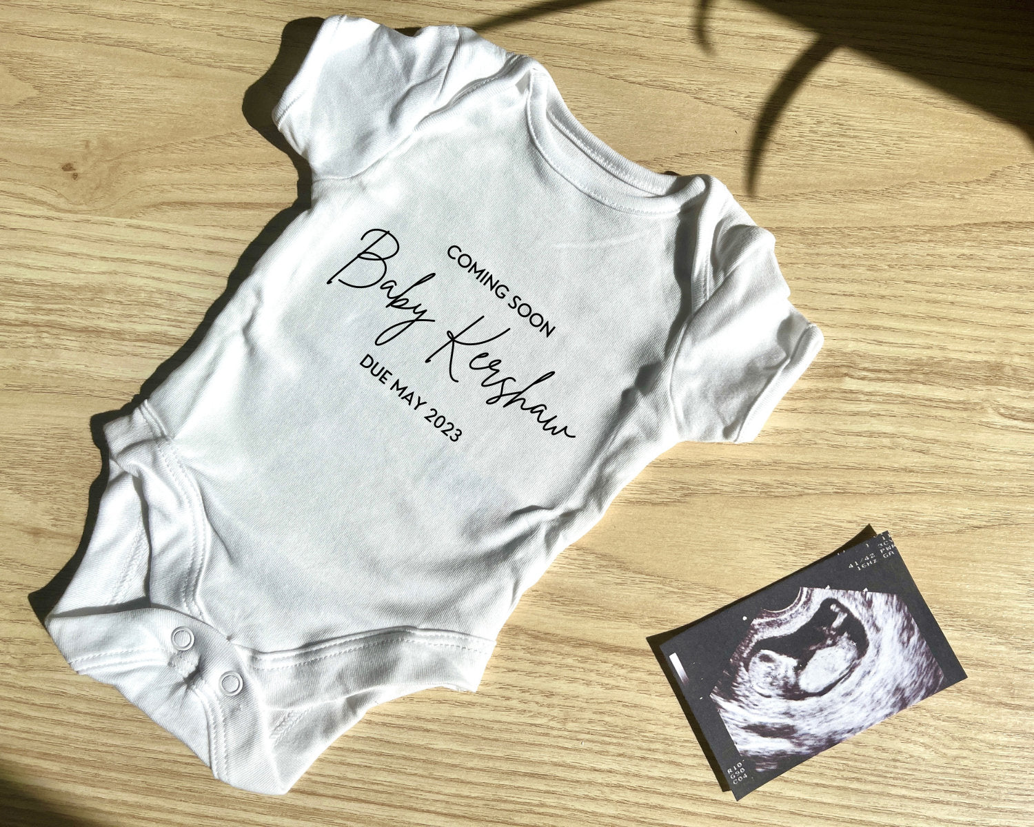 Baby coming soon | Baby announcement onesie | Personalised Baby Onesie | Newborn Onesie Personalised | Pregnancy announcement