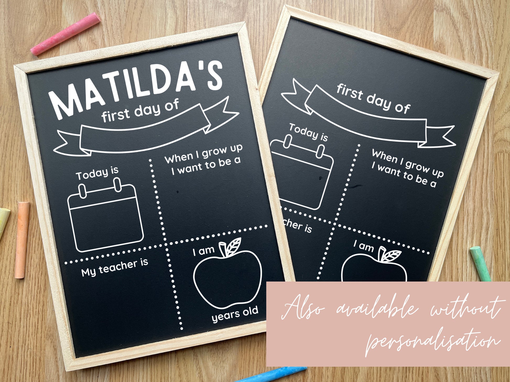 First Day of School Chalkboard Sign/Personalised First Day/Last Day of School/Nursery/Reception/ Reflection Free