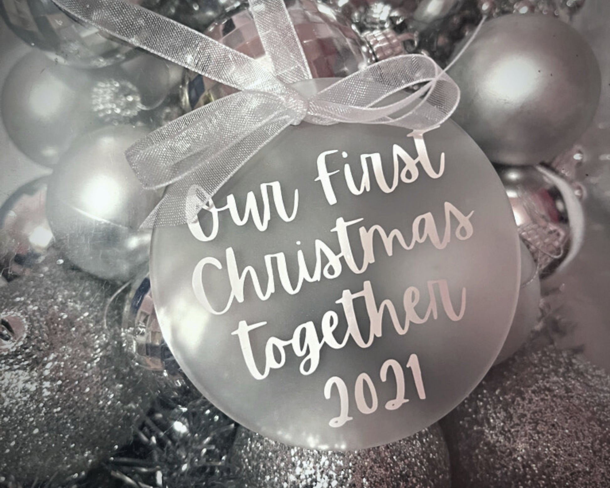 Gorgeous handmade frosted acrylic customisable tree decoration. Choose your vinyl and ribbon colour.