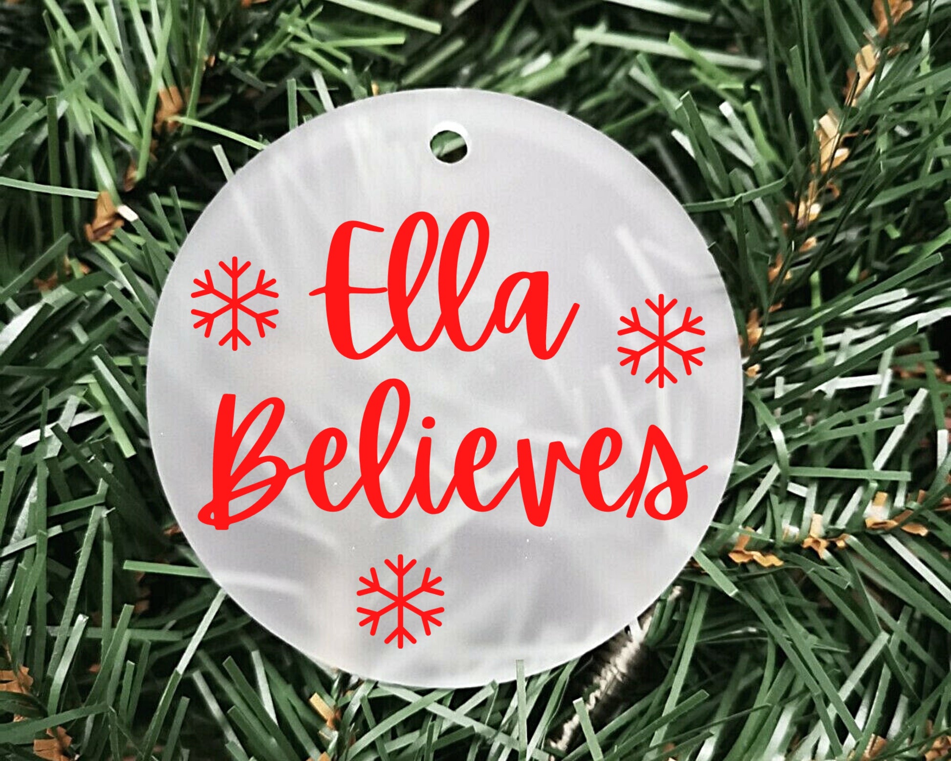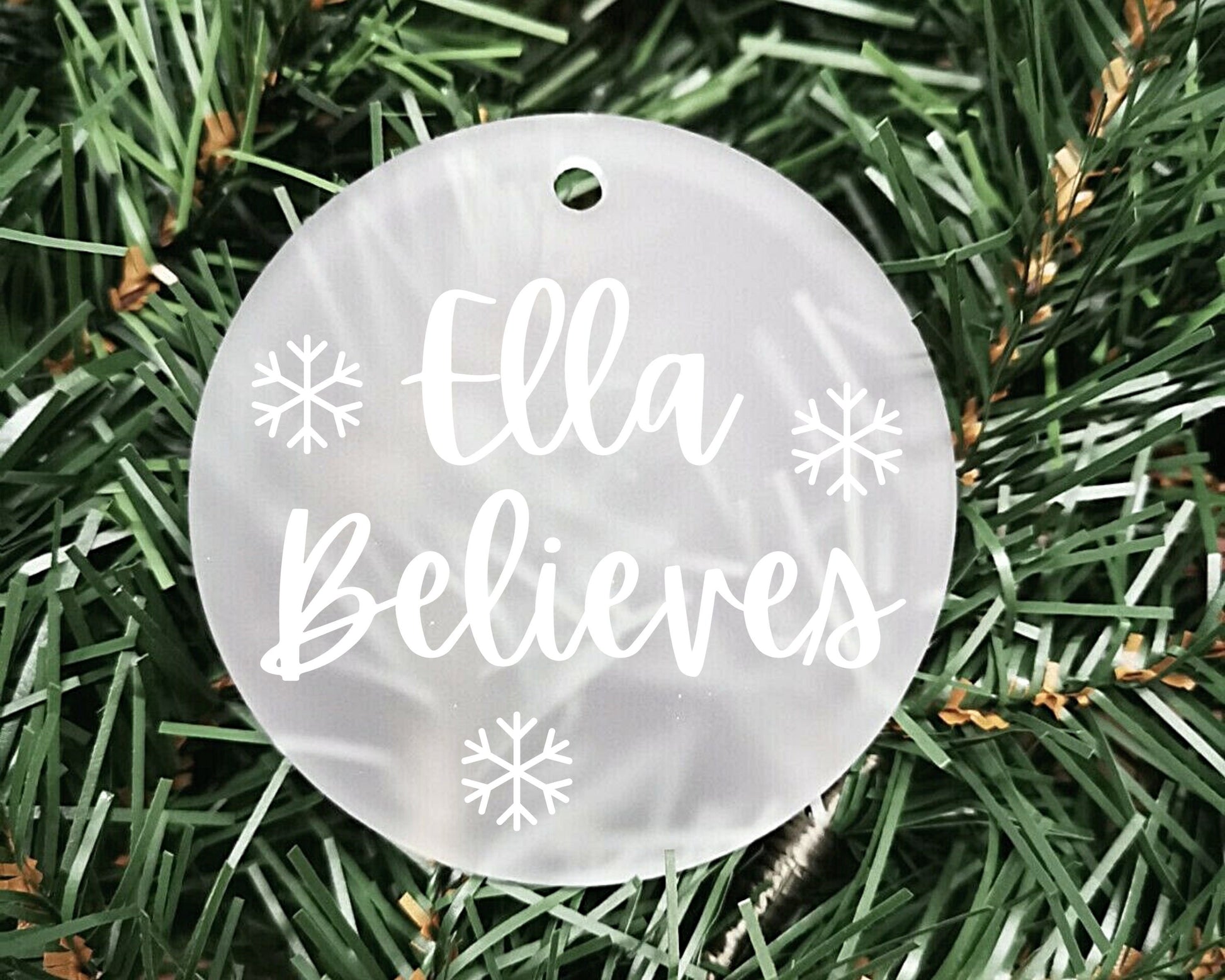 I Believe Personalised Acrylic Bauble | Frosted Acrylic Hanging Decoration | Your name believes | Handmade Tree Decor | Christmas Magic