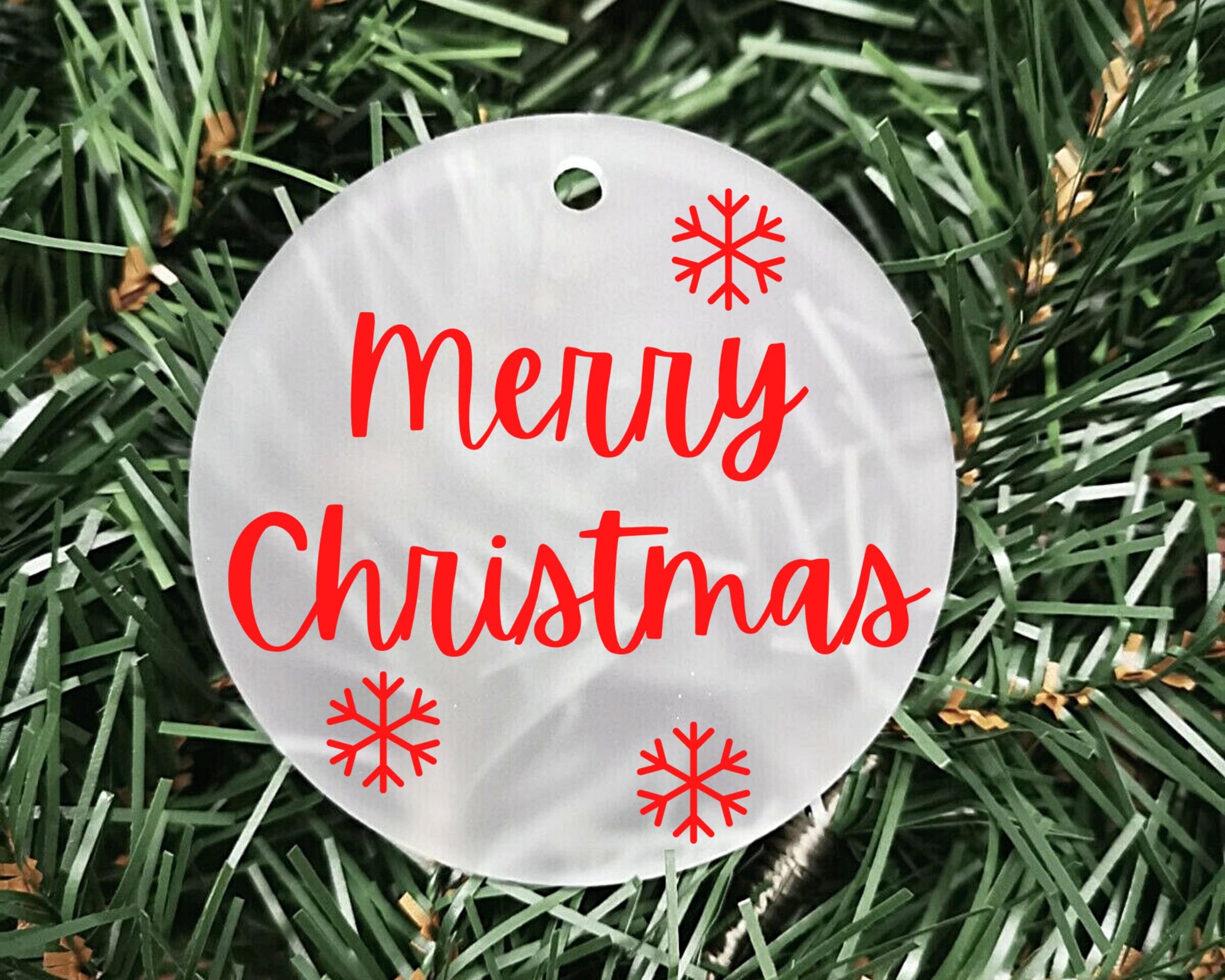 Merry Christmas | Acrylic Bauble | Frosted Acrylic Hanging Decoration | Customisable handmade christmas bauble