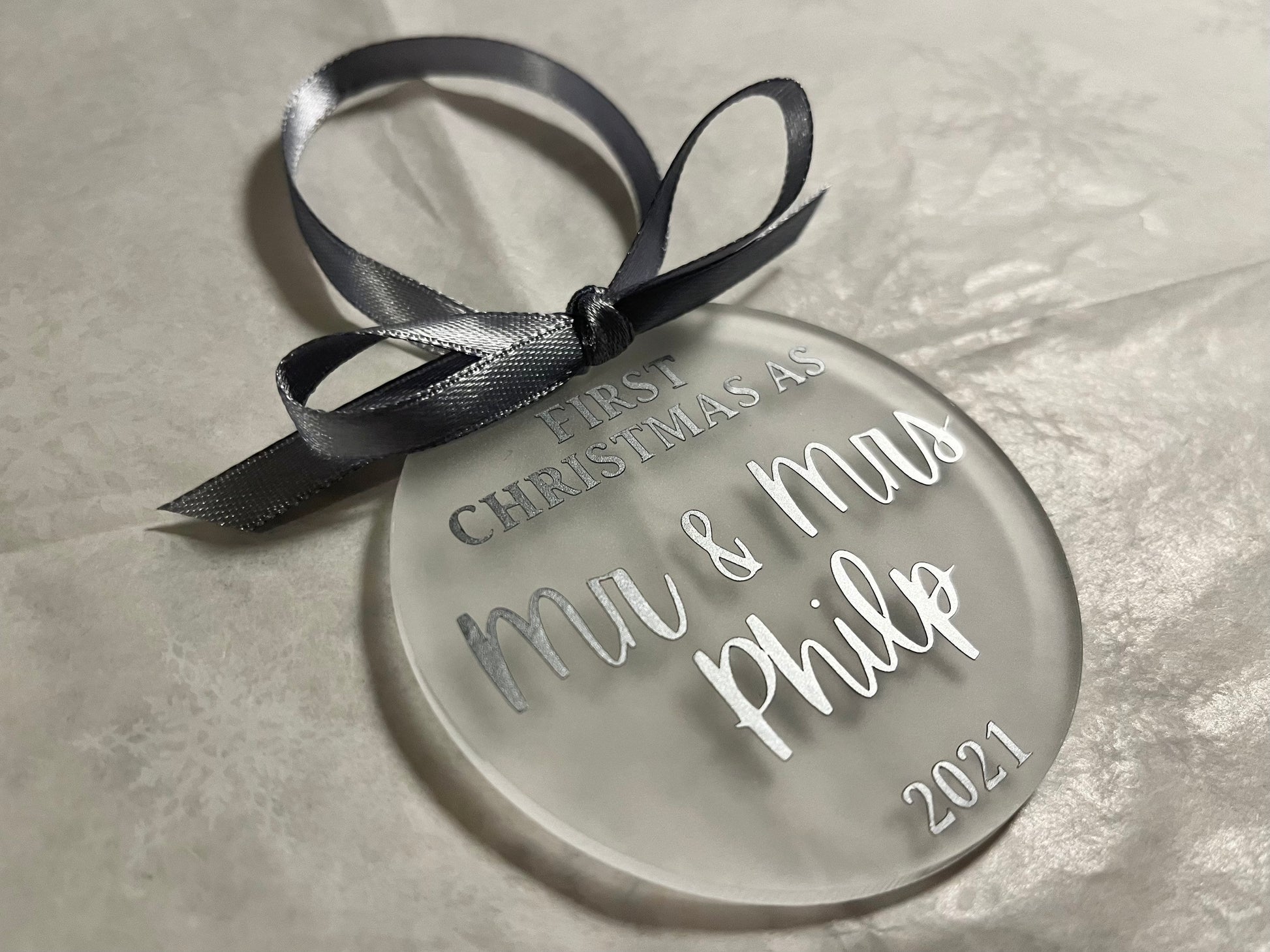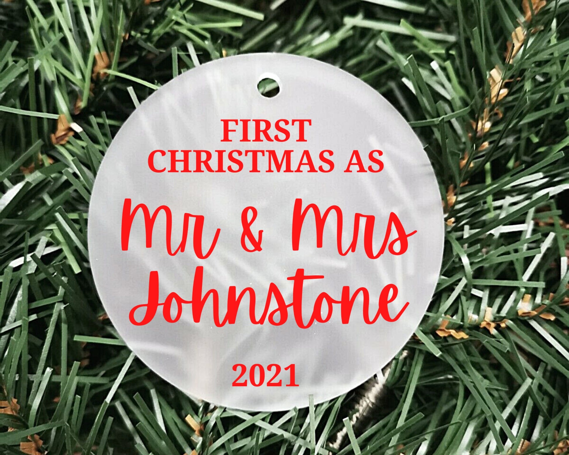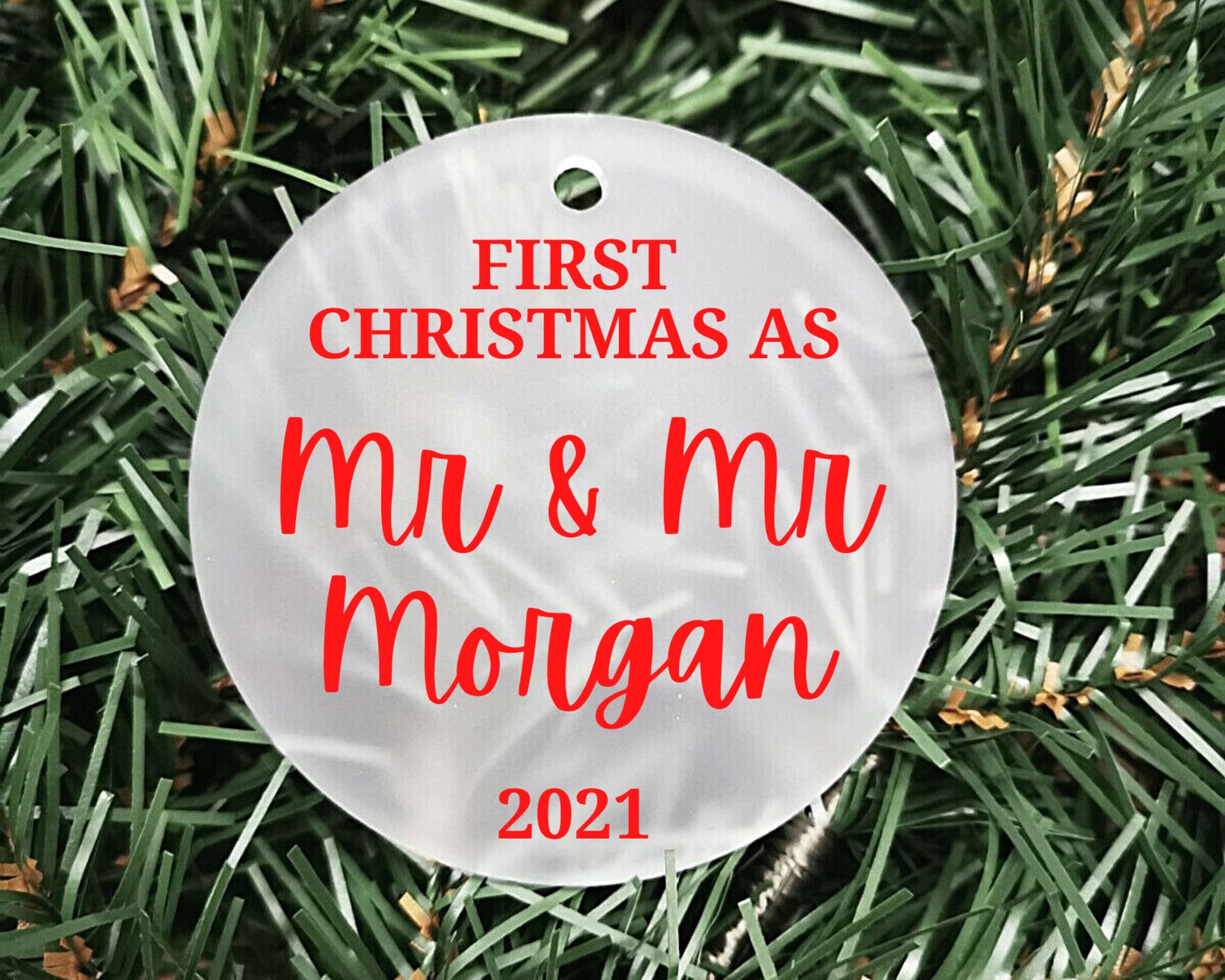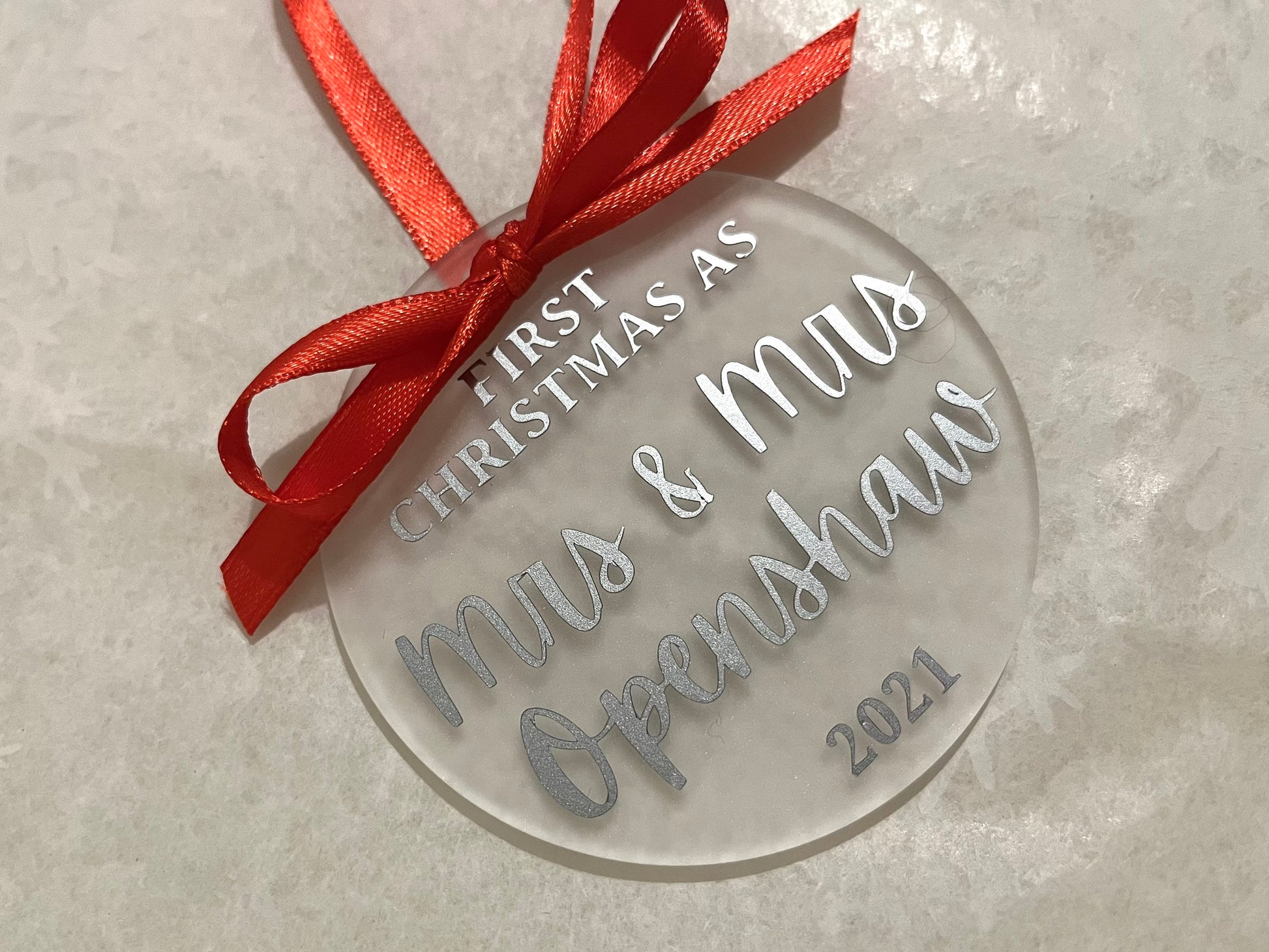 Our First Christmas as Mr and Mrs/Mr and Mr/Mrs and Mrs 2022 | Personalised Acrylic Bauble | Frosted Acrylic Hanging Decoration | married