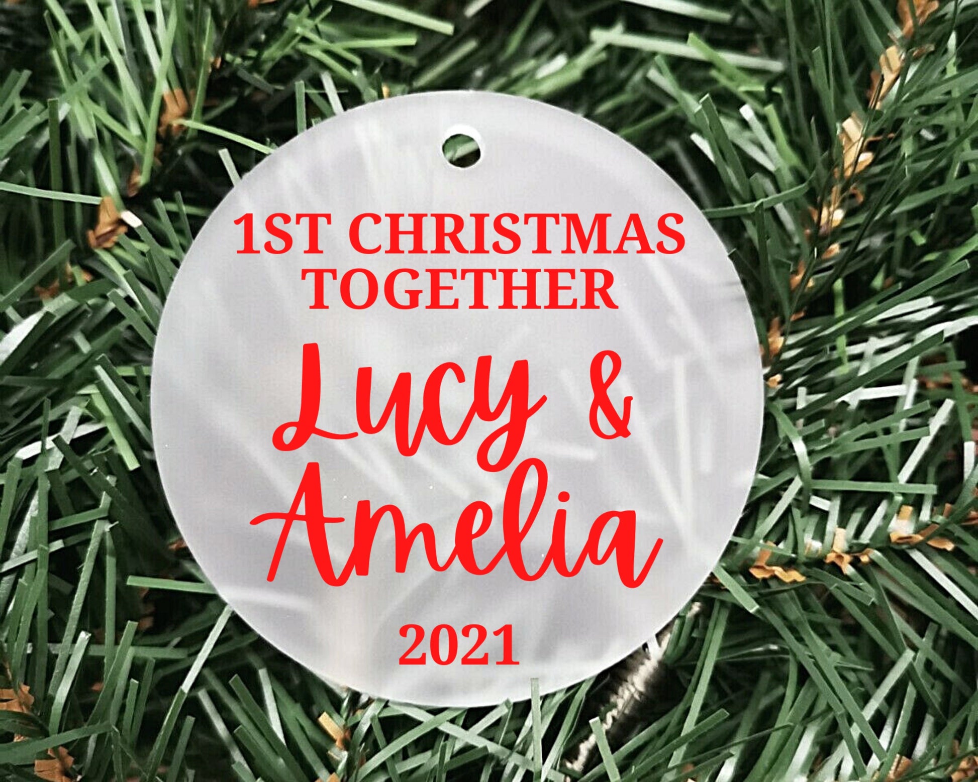 Our First Christmas Together 2021 | Personalised Acrylic Bauble | Frosted Acrylic Hanging Decoration | Couple's First Christmas |Handmade