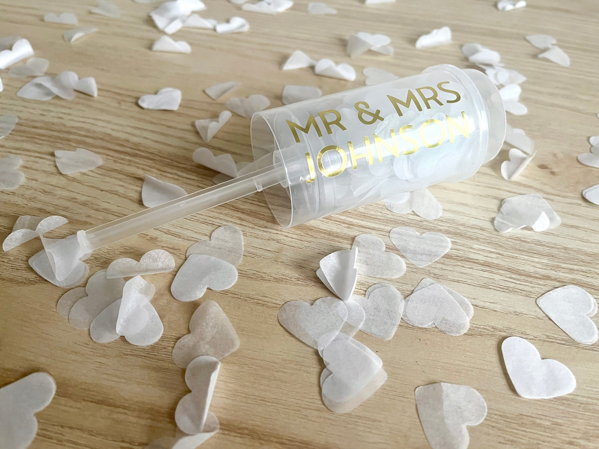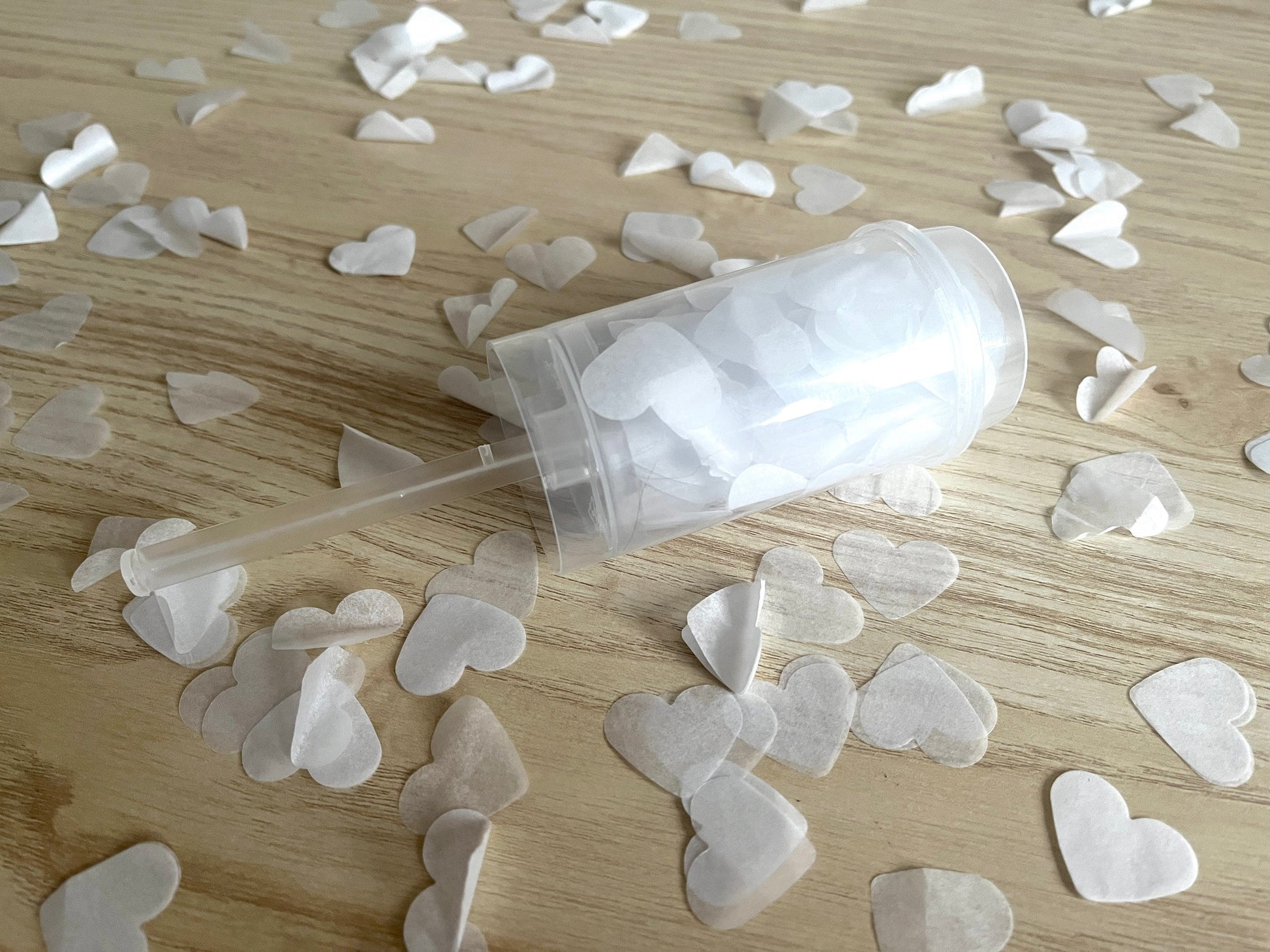 Available filled with biodegradable white tissue heart confetti or empty to fill your own