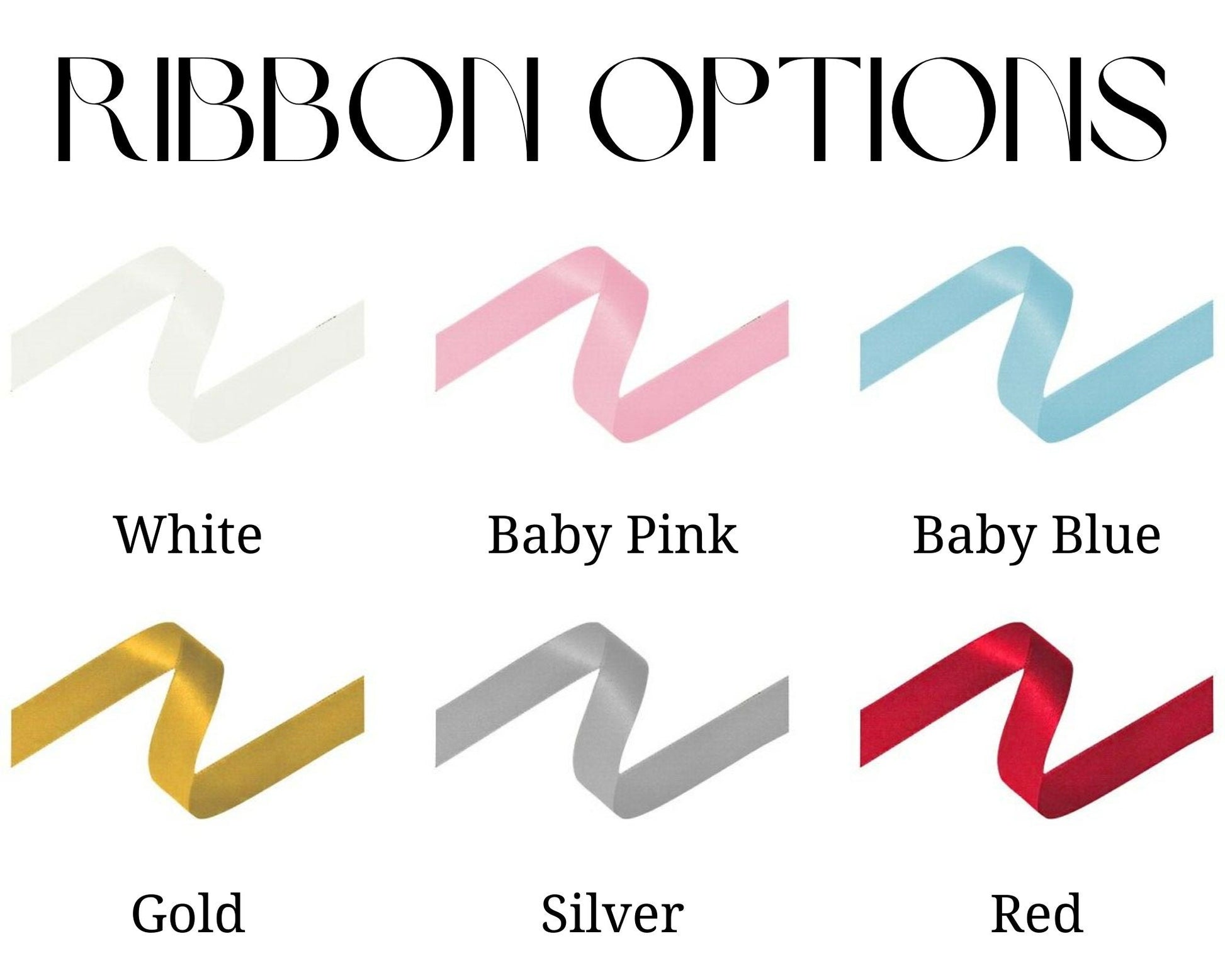 Please choose your vinyl and ribbon options from the drop-down boxes and enter your chosen wording in the Personalisation box at checkout.