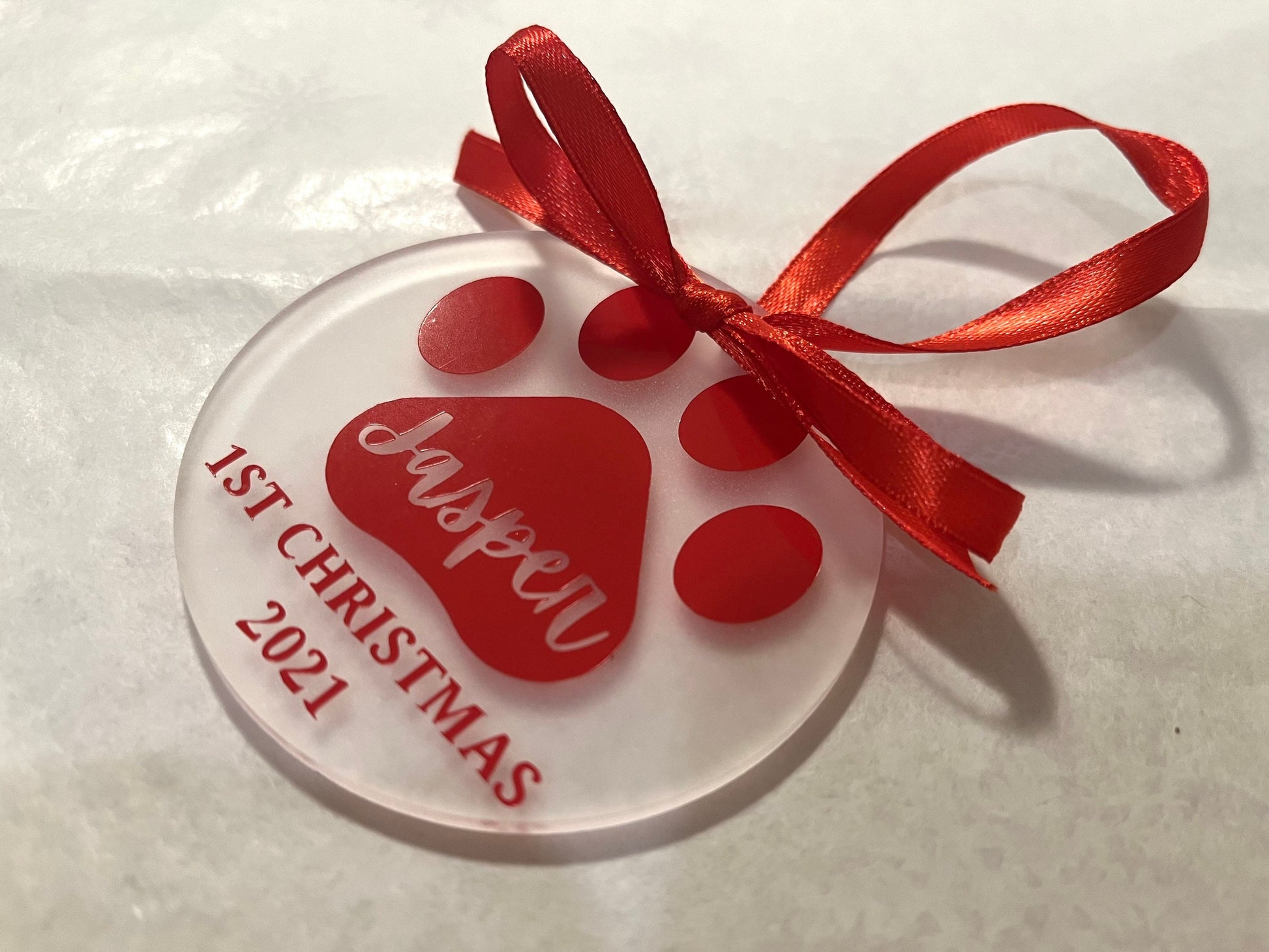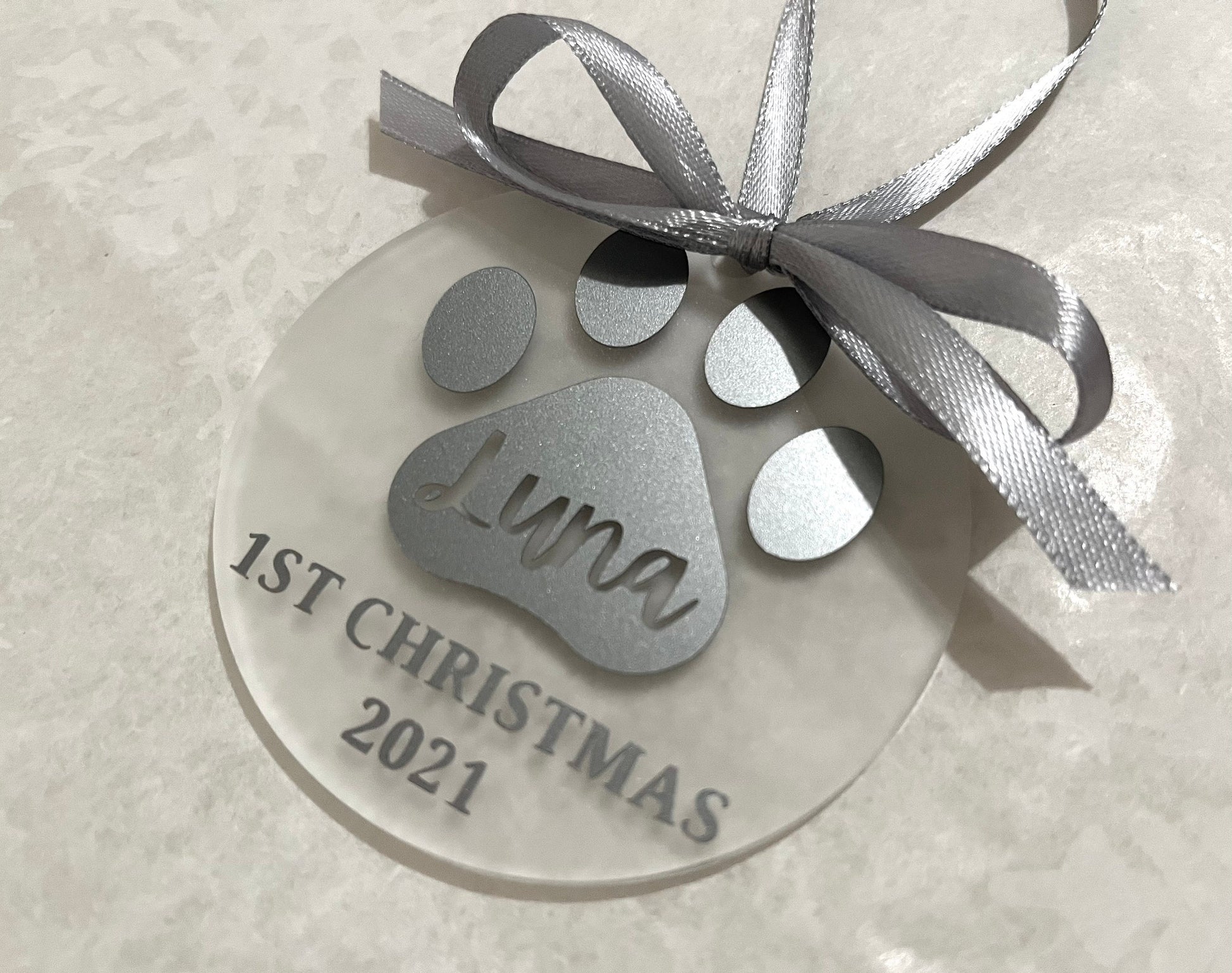 Pet's First Christmas | Personalised Acrylic Bauble | Frosted Acrylic Hanging Decoration | dog/cat first christmas bauble |