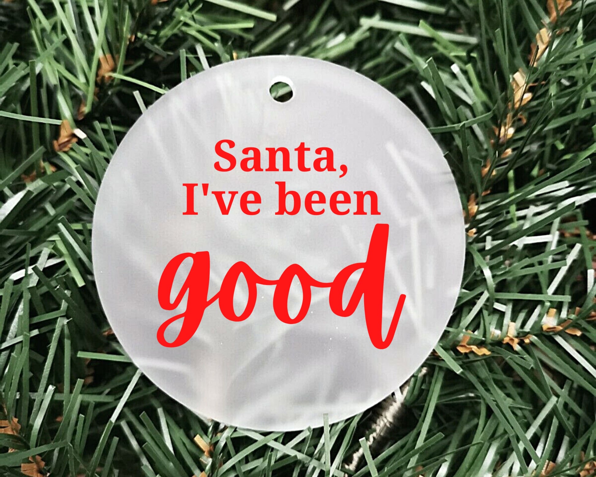 Santa I've been good | Acrylic Bauble | Frosted Acrylic Hanging Decoration | Customisable handmade christmas bauble