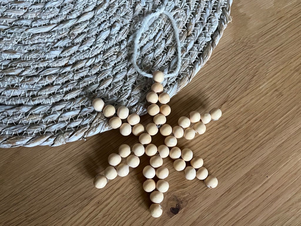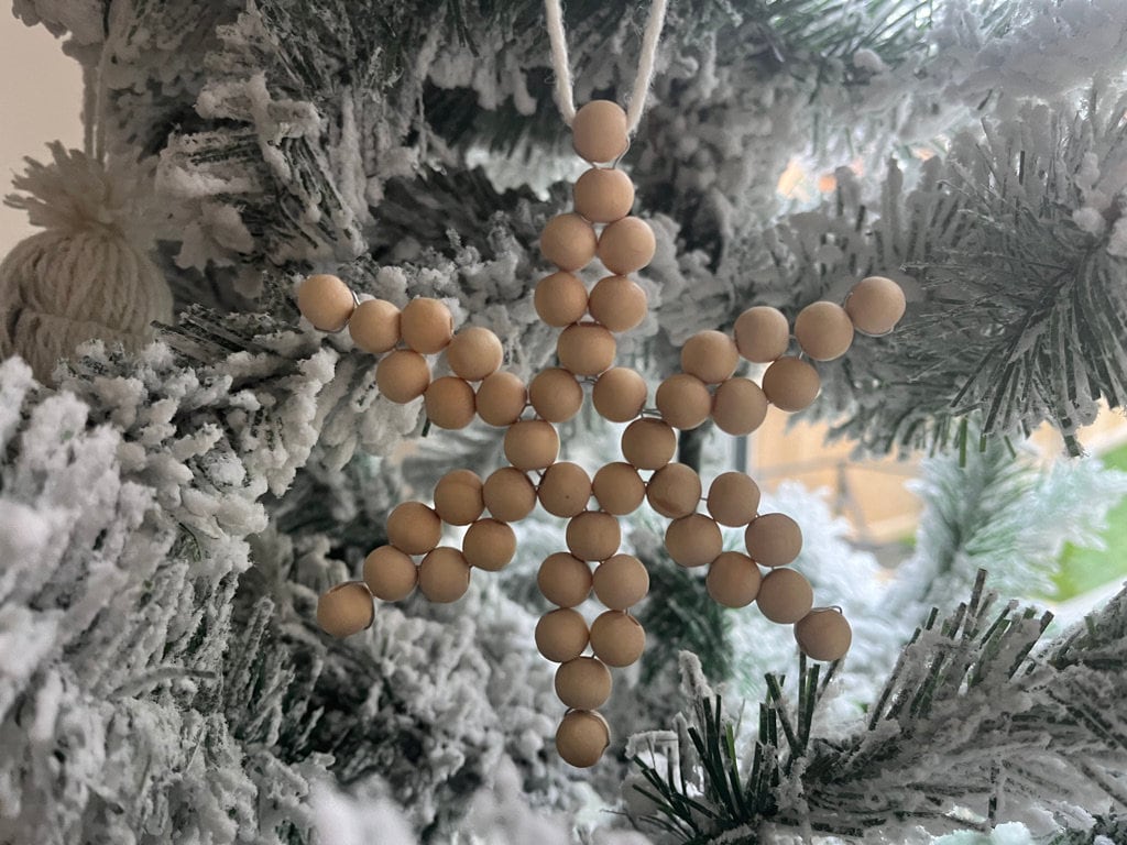 Set of 3 Wooden Bead Snowflake Bauble | Scandi tree decoration | minimal Christmas | bead tree decor | snowflake bead tree decoration