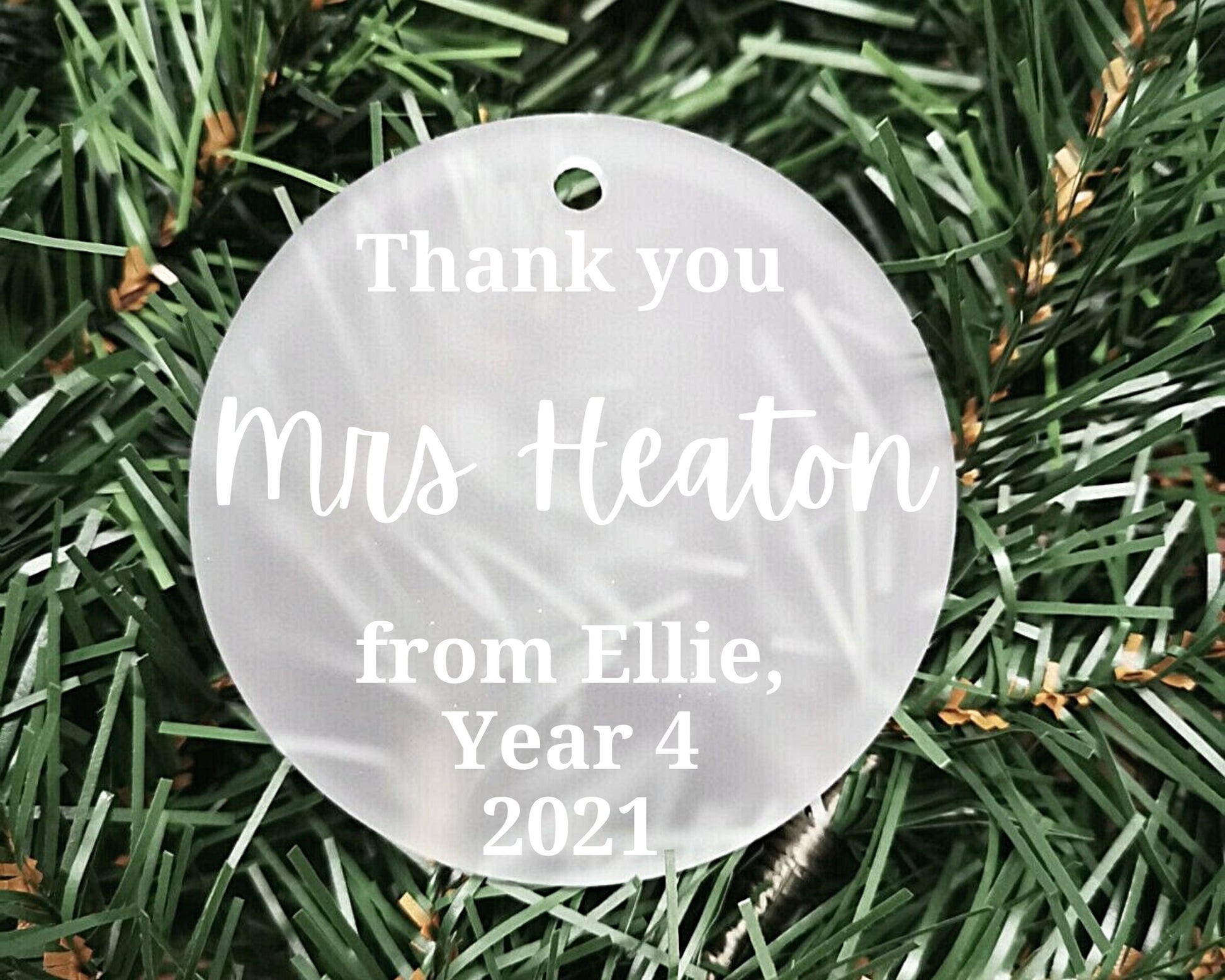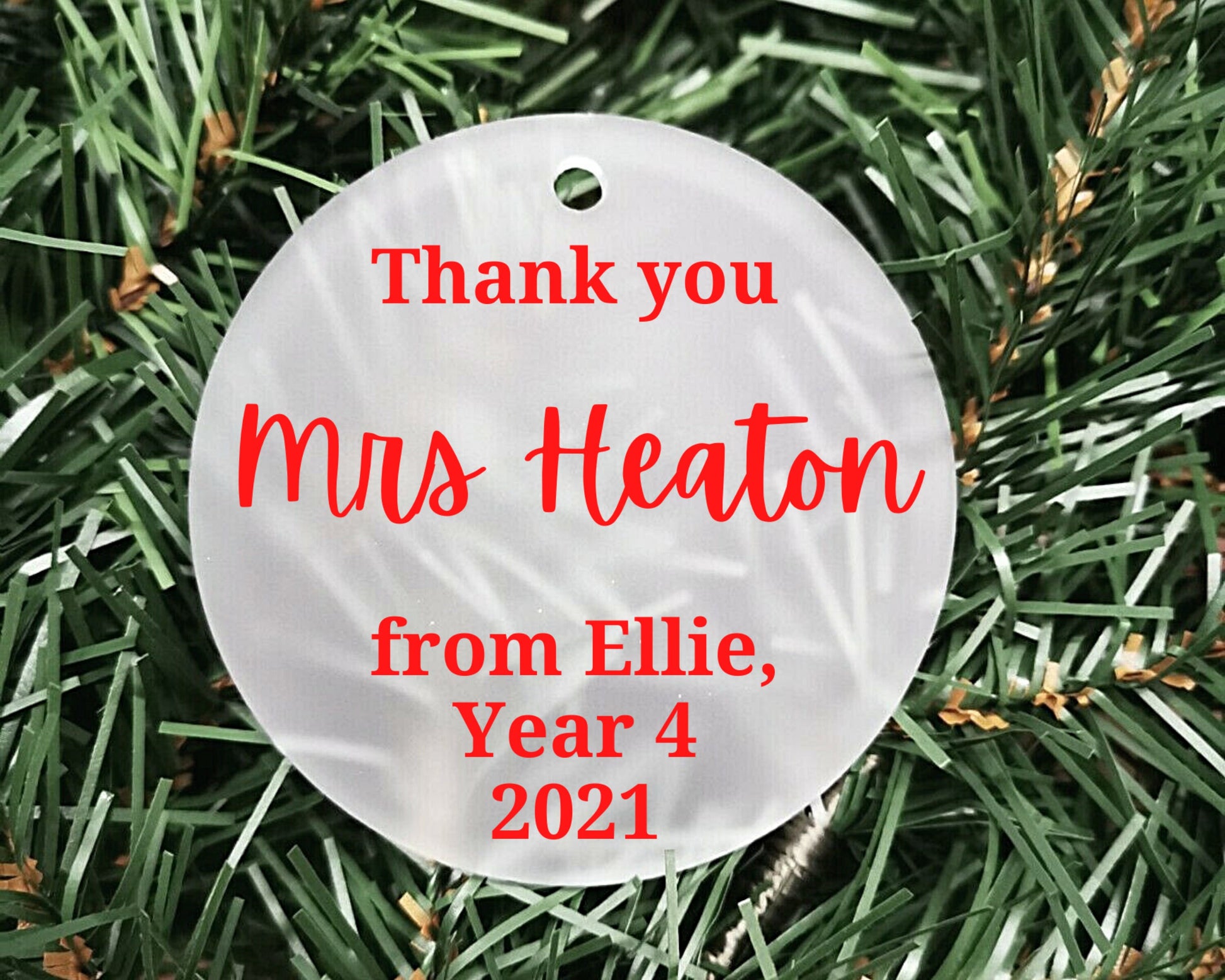 Thank you teacher christmas gift | Personalised Acrylic Bauble | Frosted Acrylic Hanging Decoration | Teacher bauble|Handmade Tree Decor